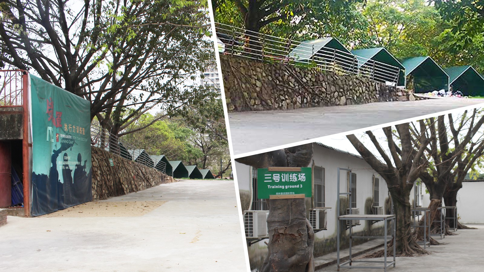 森林童话体验营最大的阅兵训练场约3000多平米,1个标准主席台,能同时容纳1000人开展训练和活动;还拥有5个小型的训练场地,多个小团队展开拓展活动,也可以互不干扰,另外设计建造了大型毕业墙以及丛林穿越等高空活动项目设施。