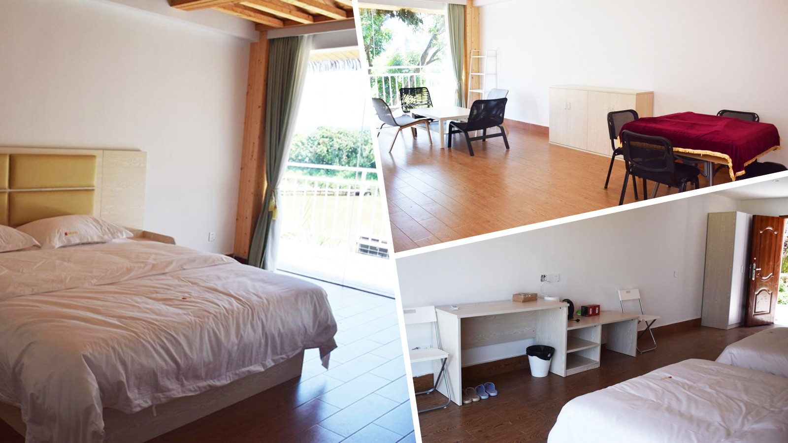 基地配备有不同规格的住宿房间。8-10人间木床上下铺营房,约500个床位;每间房间均带独立卫生间,空调,并提供全套经过消毒的床上用品,为客户提供干净、整洁、安静、舒适的住宿环境。