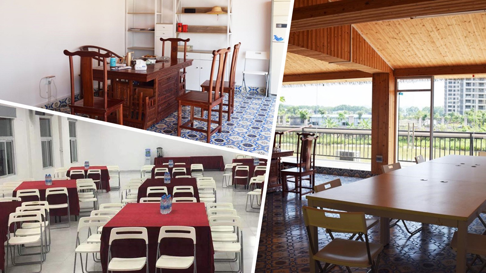 展示厅圆桌会议室(面积5.5*3.74米) / 湖边60人小型会议室(面积7.1*15.6米)